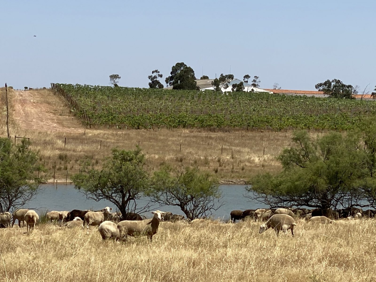 Sheep traditionally belonged to the Herdade and yet part of the large, clay-plastered sheep barn has now given way to the wine camp, they are hard to imagine from the overall picture. The shepherd with his family and their herding dogs live on the farm and take care of the numerous lambs that are born every year.